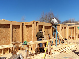 DOTSON Published on April 6, 2011 From the road. Stairway and entry closet framing. Installing top plates, preparing for trusses. The official jobsite drawing board.
