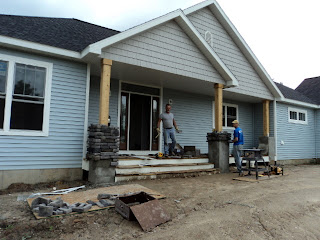 DOTSON Published on June 22, 2011 Installing stone on the Front Porch. Close-up column view. Kitchen cabinets in and ready for countertop template. Master Bathroom vanity.