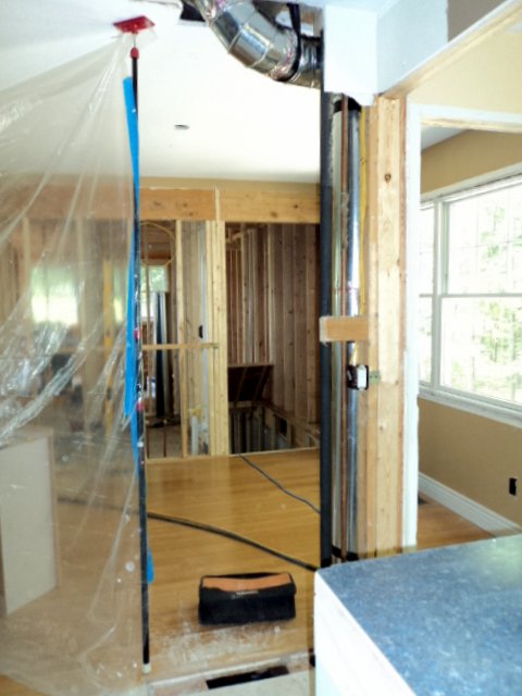 JANISH Published on May 24, 2012 Standing in the Kitchen looking toward the addition. Opening up the Dining Room/Kitchen area. Opening up the Dining Room/Kitchen area. New stairs framed up.