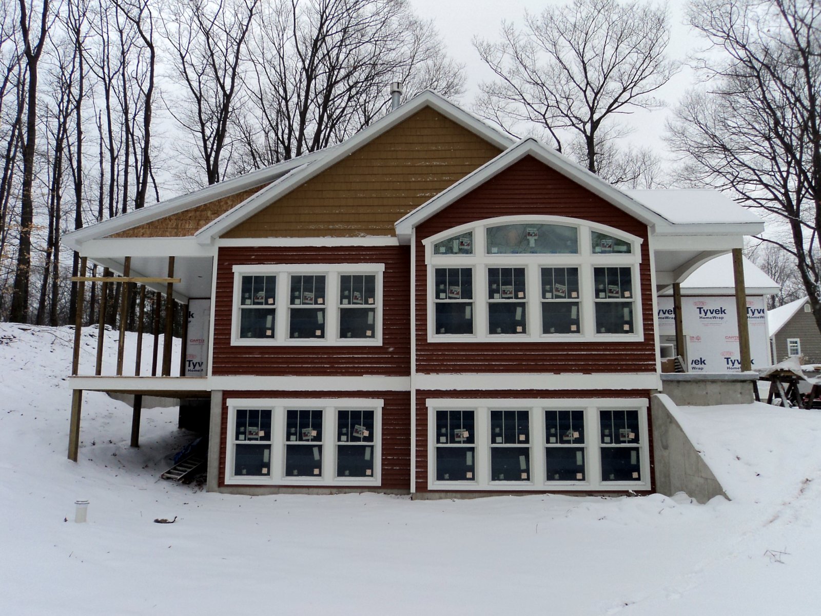 POLLOCK Published on January 22, 2013 North elevation trimmed and sided. Paint started in the Living/Dining/Kitchen area. Main Level Bedroom painted. Lower Level Bedroom painted.