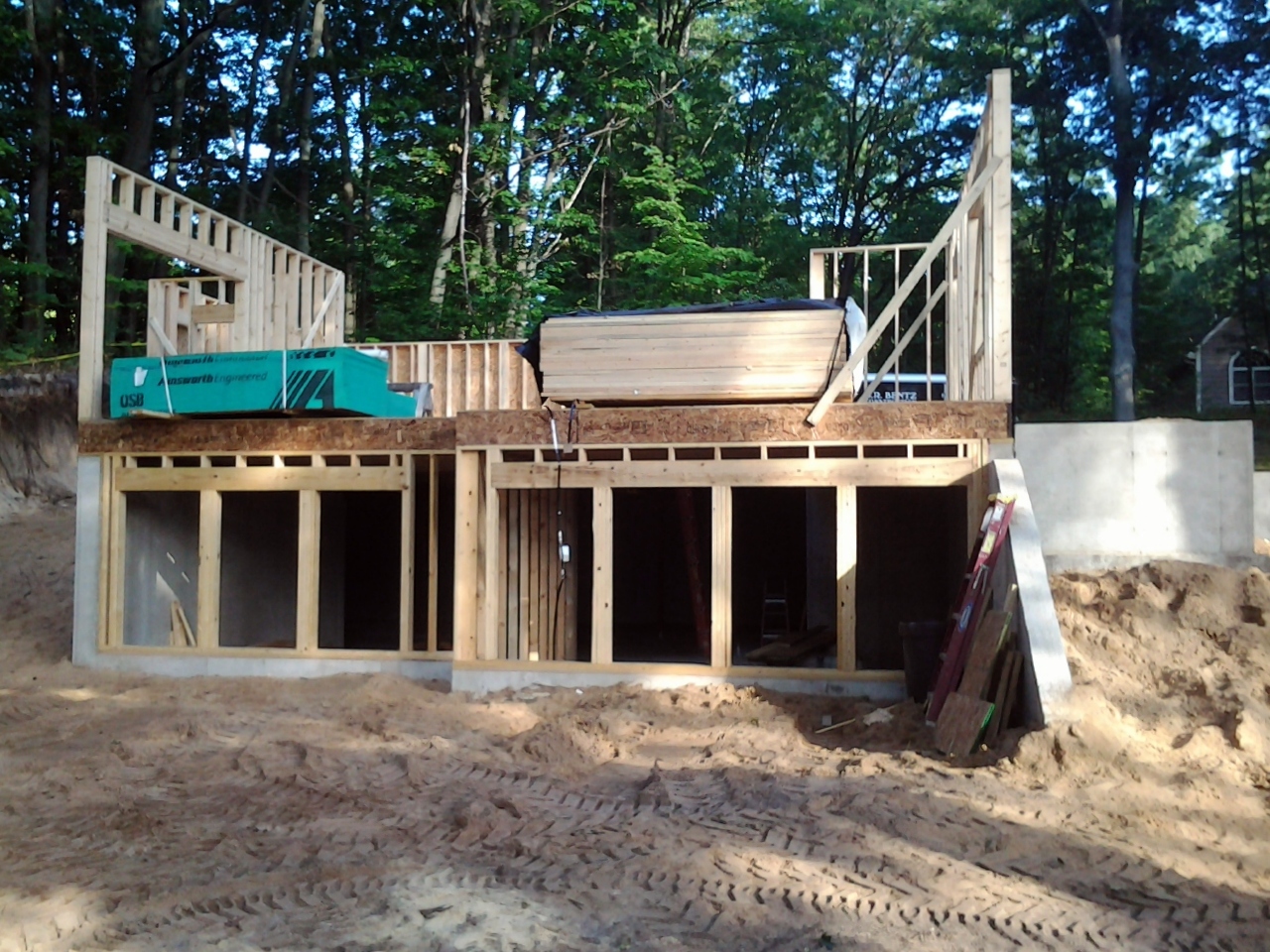 POLLOCK Published on September 6, 2012 Exterior wall framing started. View from driveway. Lake side of the house. View from the future Kitchen.