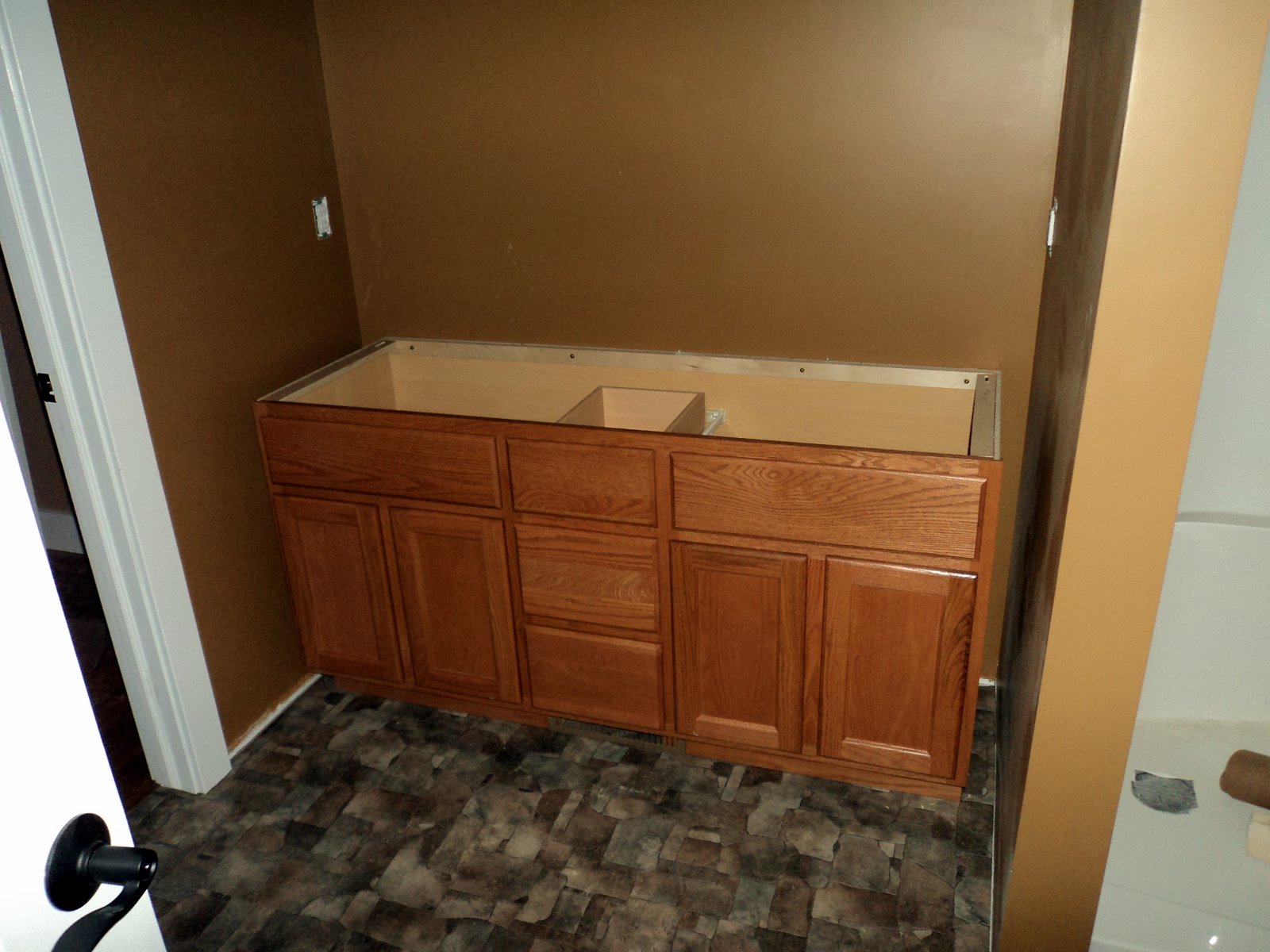 POLLOCK Published on March 1, 2013 Built-in shelving being installed in the Kitchen. Master Bathroom vanity. Painted floor in the Lower Level.