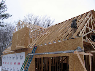 Upper Level Bedroom cantilever, roof framed and awaiting sheeting.