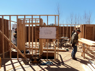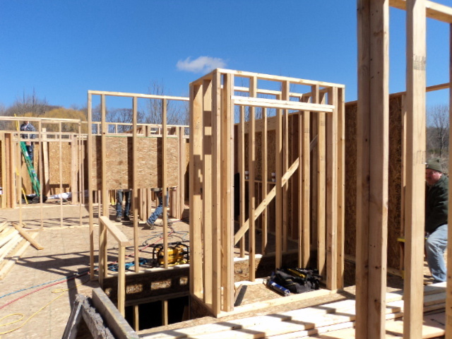 DOTSON Published on April 6, 2011 From the road. Stairway and entry closet framing. Installing top plates, preparing for trusses. The official jobsite drawing board.