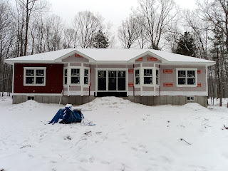 HOTOVY Published on February 13, 2012 Siding on the main elevation nearly complete. Closer view of the Main Entry. Starting siding on the back of the house. Fireplace framing.