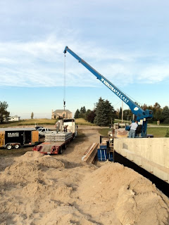 KOTHS Published on October 13, 2011 Garage floor precast panels on the way to the jobsite. Hooking up to the first Garage floor panel. Moving floor panels in to place. Lower Level exterior wall framing in progress.