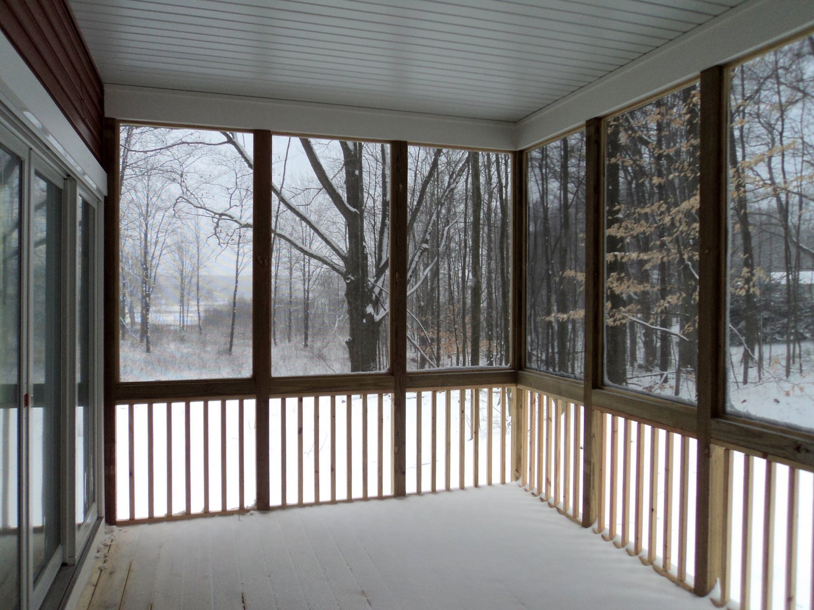 POLLOCK Published on February 1, 2013 The Main Entry on a snowy morning. Living Room windows trimmed out. Custom cedar bracket pieces stained and drying on the floor. Looking back at the Kitchen and stairwell from the Living Room. The Screen Room, best seat in the house!