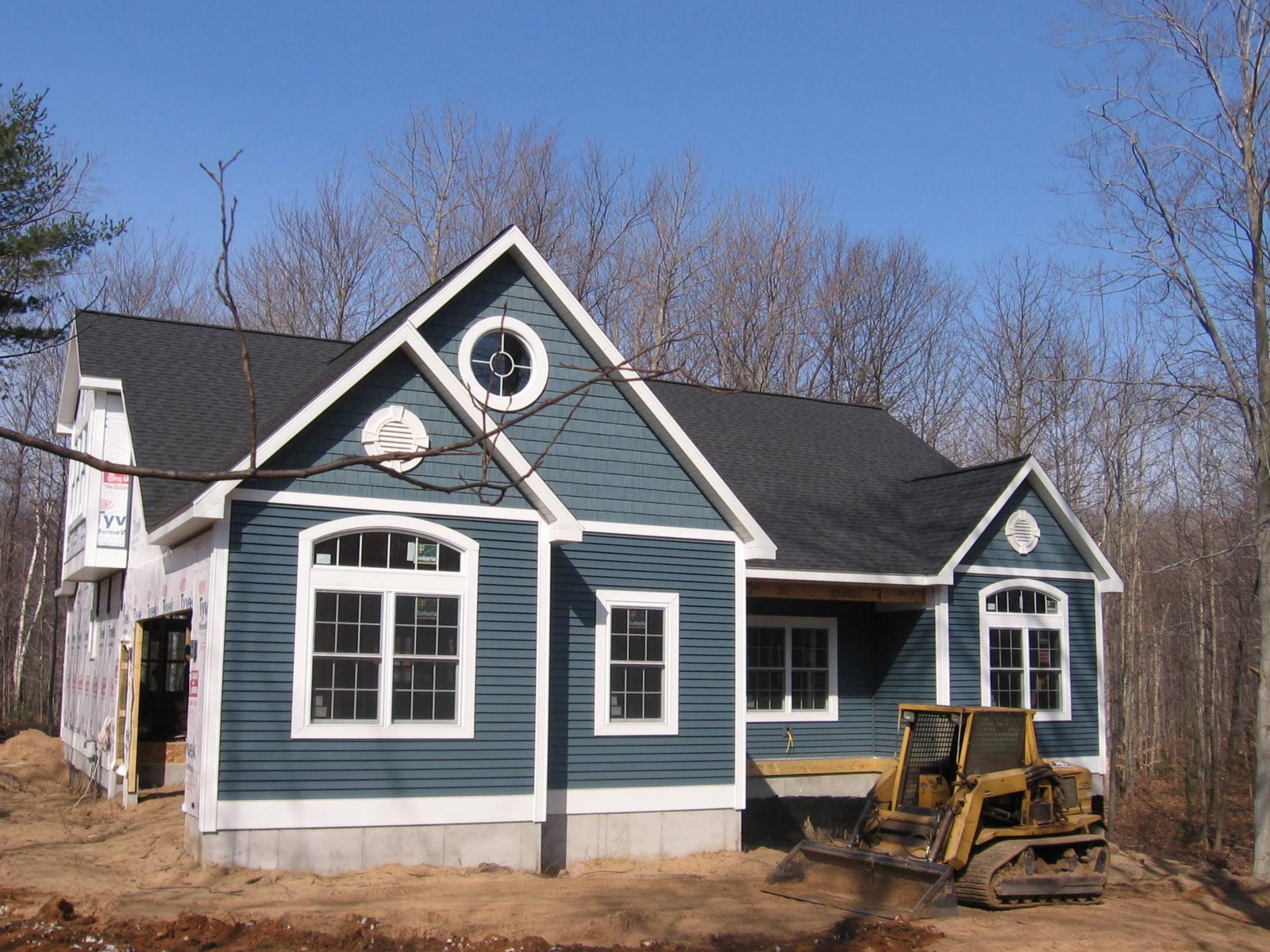 West side of the house, siding and trim complete, working on the grading.